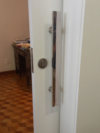 De fácil instalação, ela corre sobre trilhos fixados na parede, eliminando a necessidade de grandes reformas.